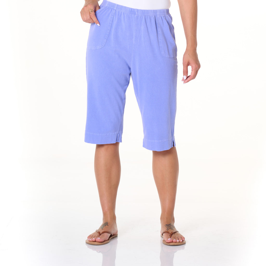 The Marco Pocket Pedal Pushers is a bermuda style with POCKETS!! This easy pull-on bottom will be your new favorite go to for any occasion. This pedal pusher is based on our signature Jersey Capri with elastic waistband, side slits and wide hem. 13 1/4" inseam. Preshrunk. Machine wash cold, tumble dry low. 100% soft cotton jersey. Made in the USA. Model is 5"8" and wears a size small.