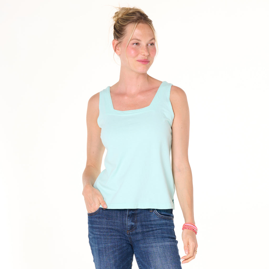 The Boxy tank is an essential piece to your wardrobe. This must have tank has a shorter length that complements your waist, square neck front and back, and bra friendly. The side slits at hem gives an added touch. Length 22" in size MD. Preshrunk. Machine wash cold, tumble dry low. 100% soft cotton jersey. Made in USA. Model is 5'8" and wears a size small.