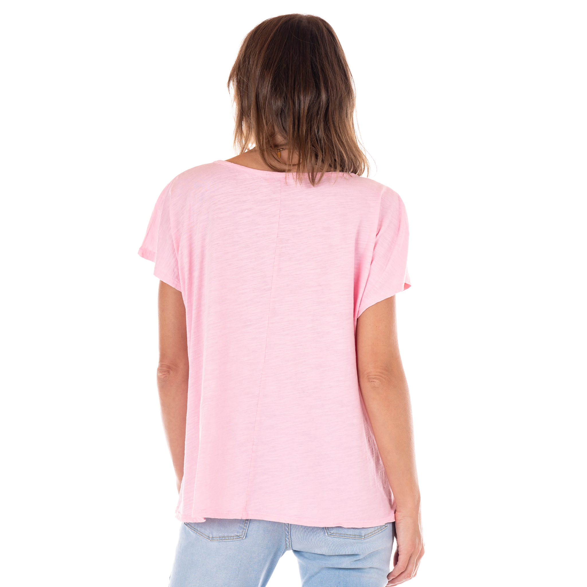 Comfortable and cool are the two words everyone uses to describe the one-size Keepsake T. Featuring a simple, slouchy fit, round neckline and straight hem that will pair with your favorite bottom.  Length 24 1/2" and width 46" in this one-size T. Preshrunk. Machine wash cold, tumble dry low. 100% mid-weight cotton slub. Made in the USA. Model is 5'8".