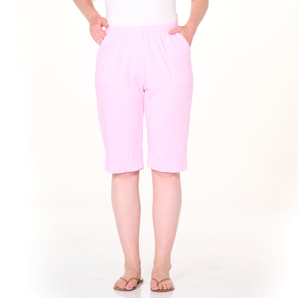 The Marco Pocket Pedal Pushers is a bermuda style with POCKETS!! This easy pull-on bottom will be your new favorite go to for any occasion. This pedal pusher is based on our signature Jersey Capri with elastic waistband, side slits and wide hem. 13 1/4" inseam. Preshrunk. Machine wash cold, tumble dry low. 100% soft cotton jersey. Made in the USA. Model is 5"8" and wears a size small.