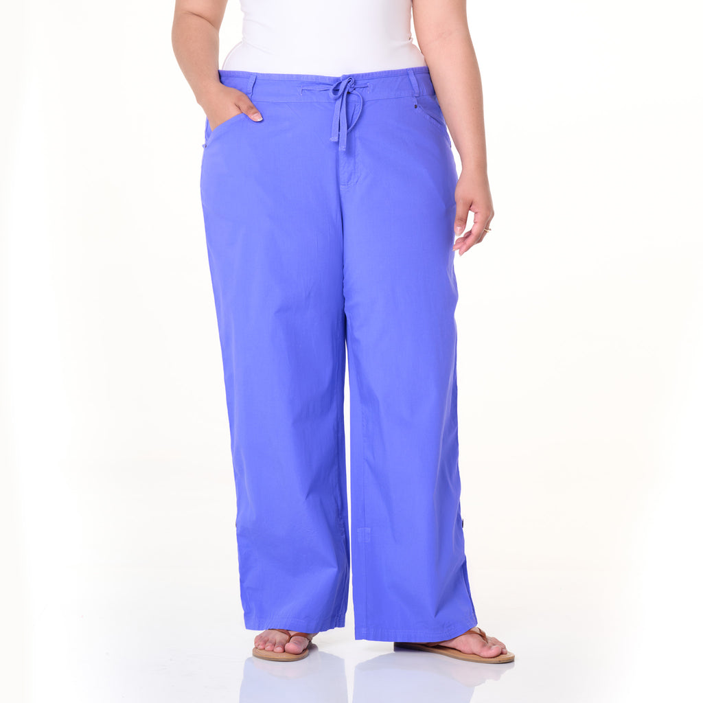 The Roll Up Pant is designed to be functional and comfortable with our stretch broadcloth fabric for all body shapes. The relaxed fit has a comfy flat band on waist, functional pockets and easy to style for your next adventure. Featuring a zip fly with brass button closure, drawstring, front and back patch pockets. Each leg has tab roll-up with an Inseam at 29”. Preshrunk. Machine wash cold and tumble dry low. 97% Cotton, 3% Spandex. Finished in the USA from imported materials. Model is 5"8" and wears a size 1X.