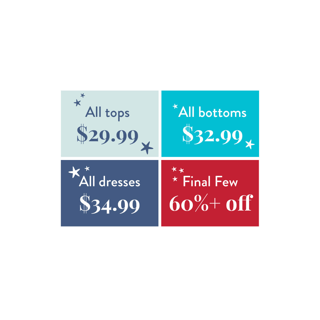 But just because these items are on clearance doesn't mean they're any less stylish or comfortable than our full-priced items. We take pride in using only the highest-quality fabrics and designing clothes that are both fashionable and functional. And with our commitment to American-made products, you can feel good knowing that your purchase supports both your style and your country.