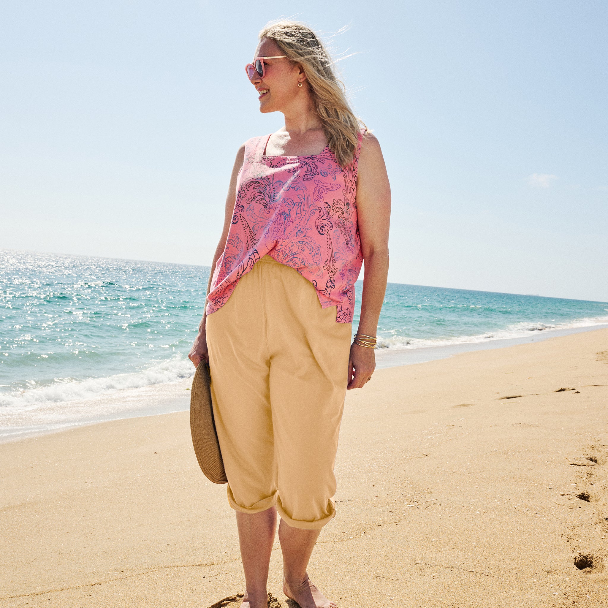 For uncomplicated comfort, our signature Jersey Capris are the way to go. Featuring an elastic waistband that sits at your natural waistline, side slits and wide hems. 21.5" inseam. Preshrunk. Machine wash cold, tumble dry low. 100% soft cotton jersey. Made in the USA.