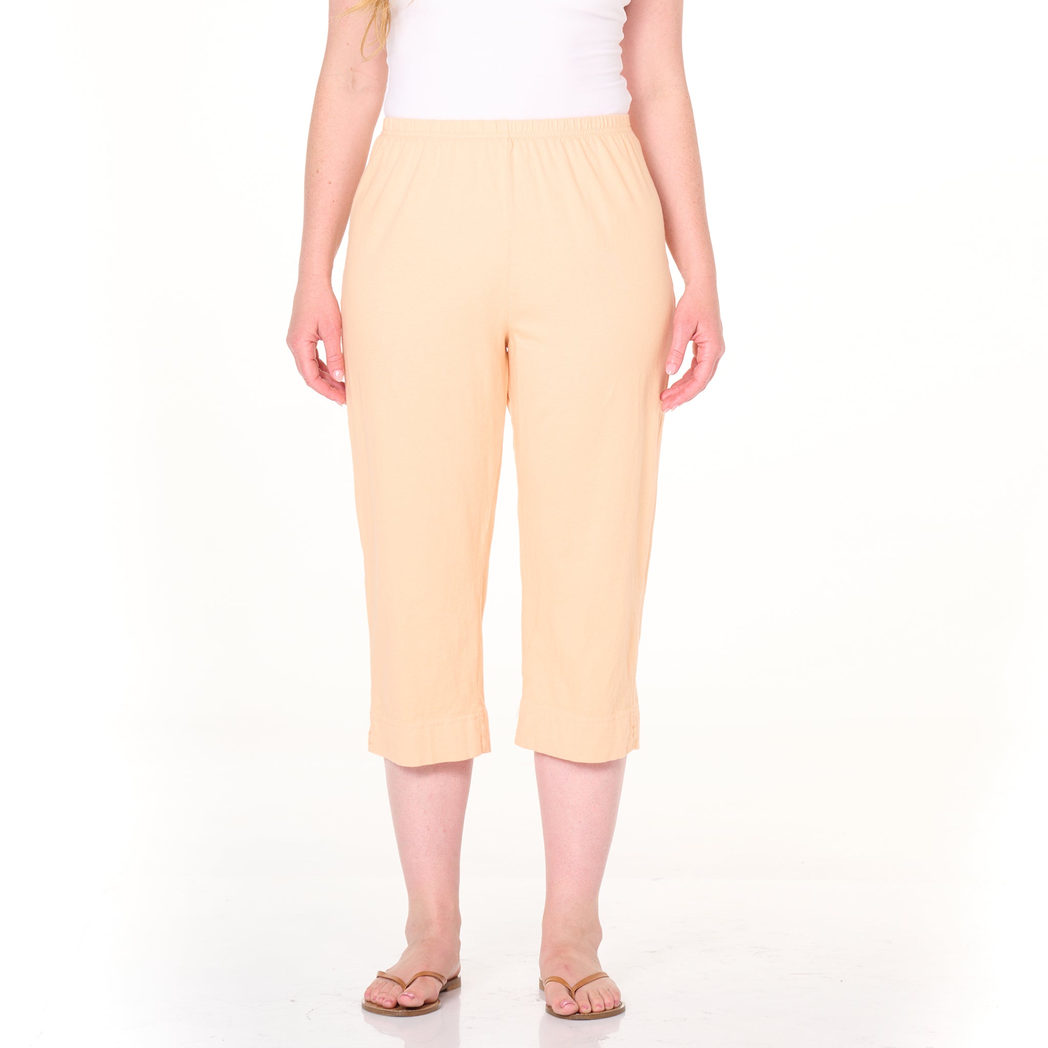 For uncomplicated comfort, our signature Jersey Capris are the way to go. Featuring an elastic waistband that sits at your natural waistline, side slits and wide hems. No Pockets. 19.5" inseam. Preshrunk. Machine wash cold, tumble dry low. 100% soft cotton jersey. Made in the USA. Model is 5"8" and wears a size small.