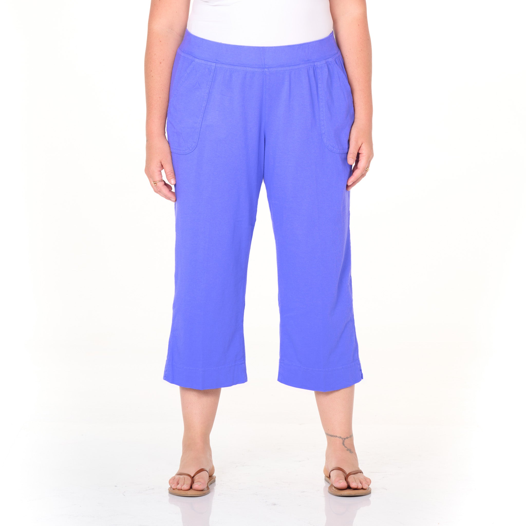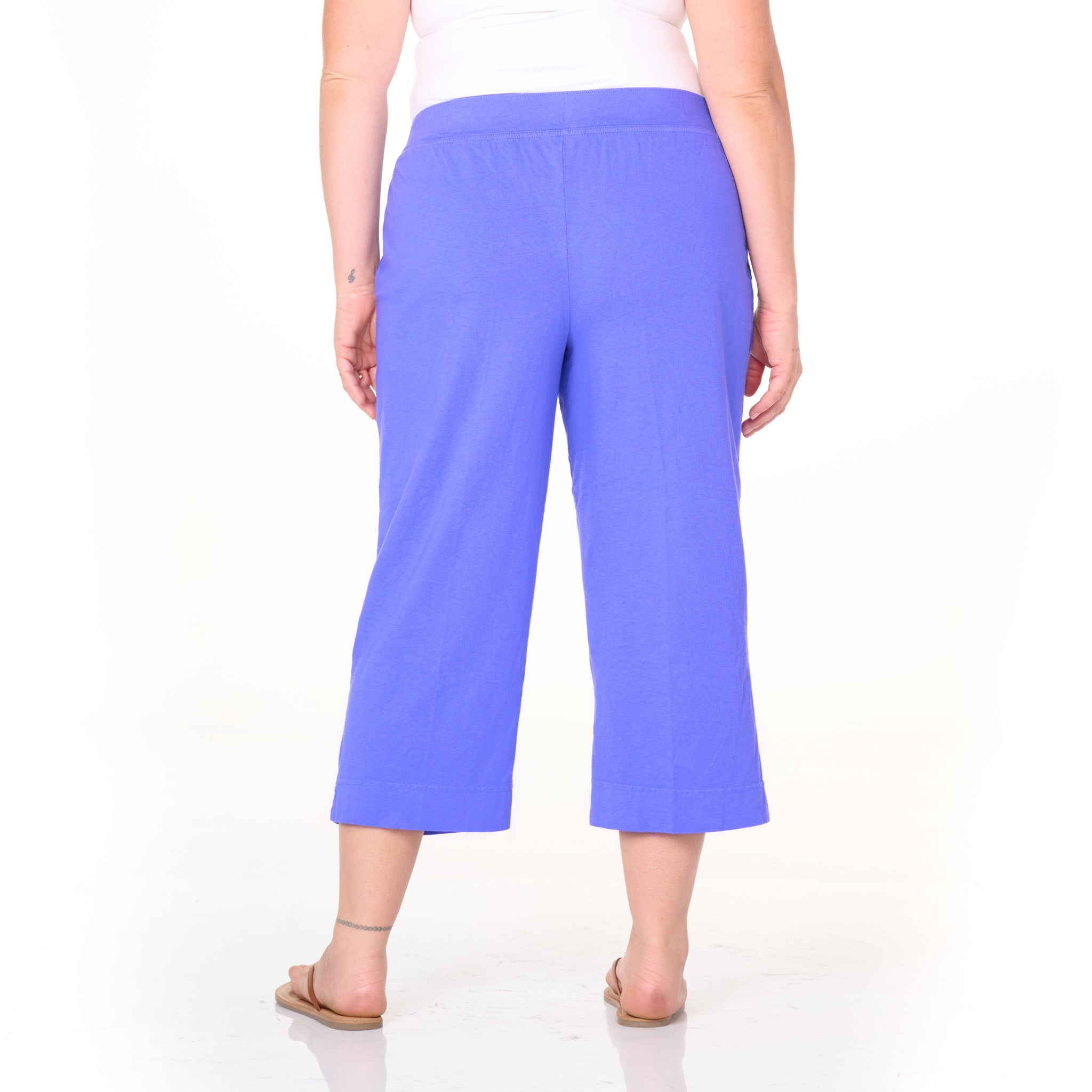 The Key Largo Capris are perfect for those easy, casual days. The effortless pull-on capris pants has a mid-rise with a straight-leg silhouette. Features deep side-seam pockets, flat elastic waistband that sits at your belly button, with side slit detail. 23" inseam. Preshrunk. Machine wash, tumble dry. 100% soft cotton jersey. Made in the USA. Model is 5"8" and wears a size 1X.